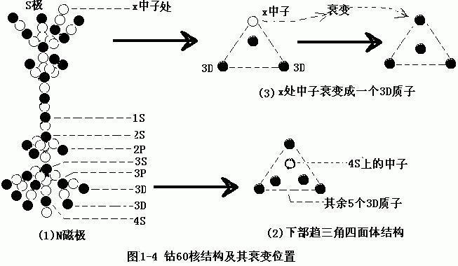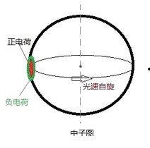 霍夫施塔特早年用快电子打击中子实验时发现,中子在这小范围的正电荷外围分布着小圈负电荷。这些“小范围”与整个中子体积比较相当于一个小小的点。组成中子的物质并没有平分电荷,而正负电荷就是在一点上。中子正负电荷集中在一点,这一点正好在光速自旋的外围圆周上。